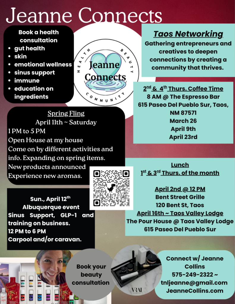 • Monthly post in the Taos Networking Facebook group to highlight your business.